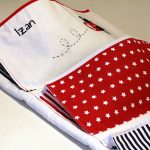 Yo le he puesto el nombre del niño. Lo he bordado en un círculo que luego he pegado al neceser.