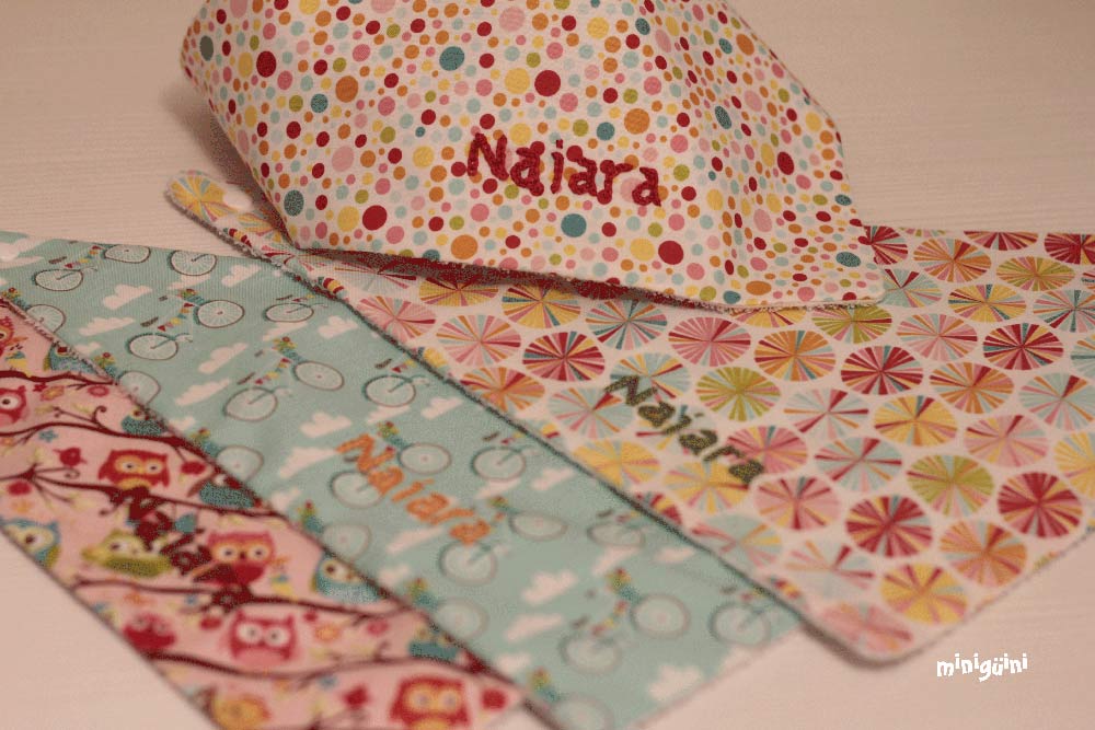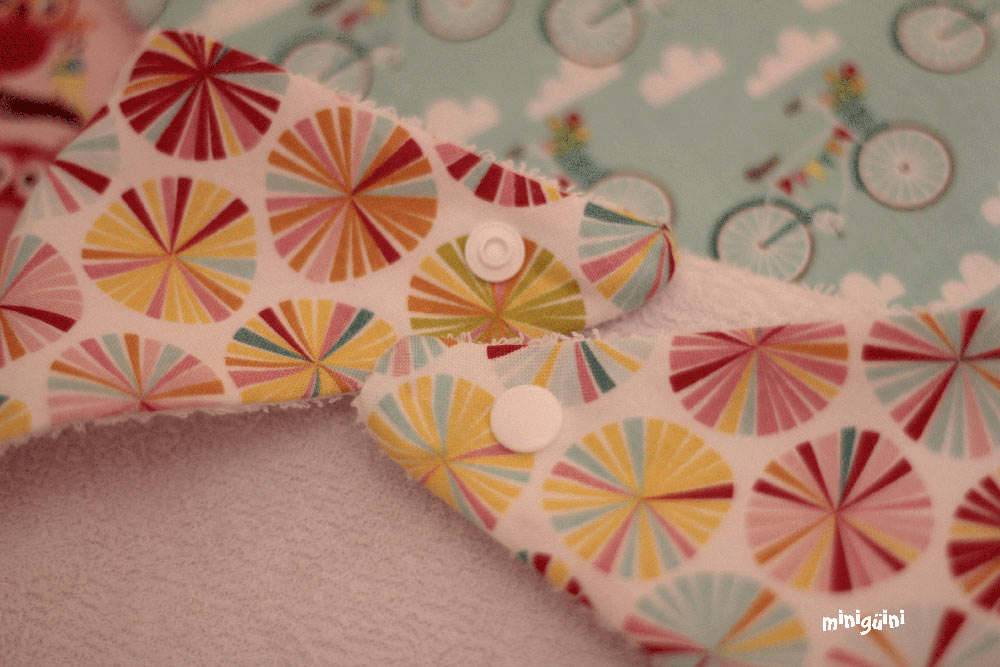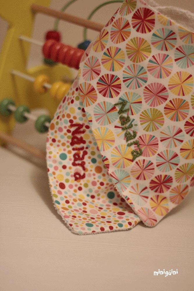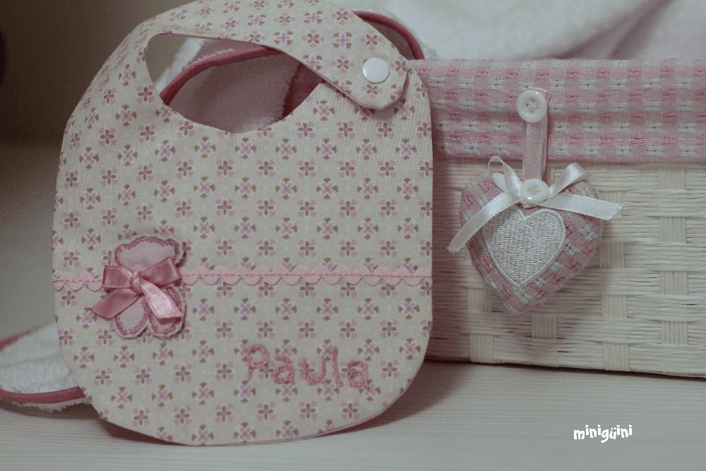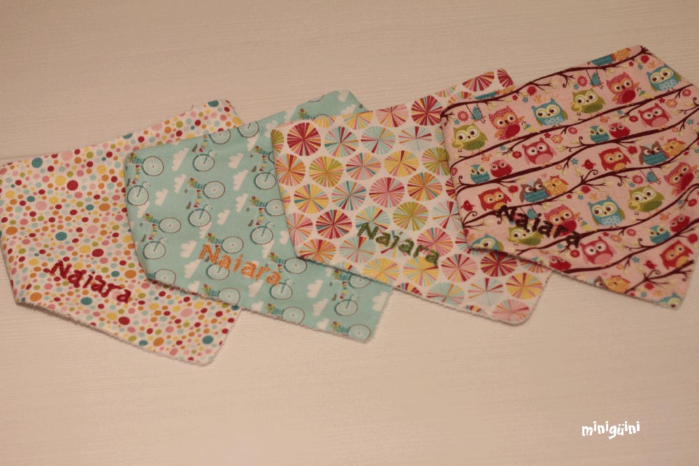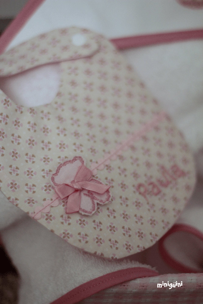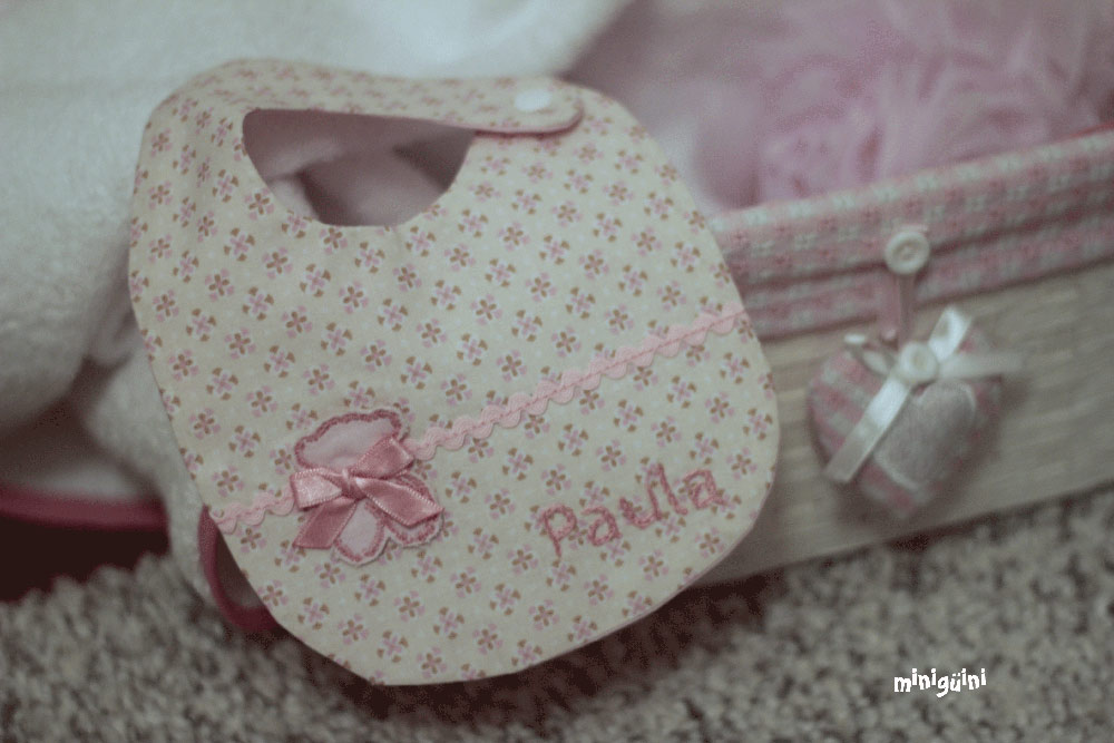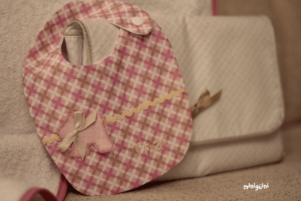 En los baberos no suelo poner aplicación, al final buscamos algo cómodo y práctico a la hora de utilizar y de lavar. Pero sí que me gusta ponerles detalles como piculina, lazo o botones para darles ese toque diferente 😉