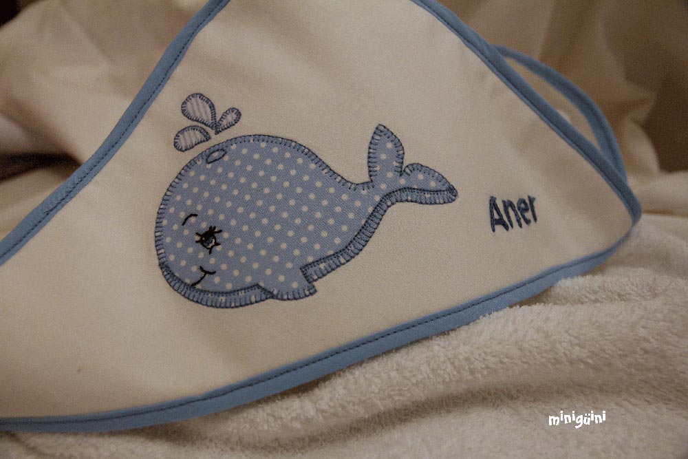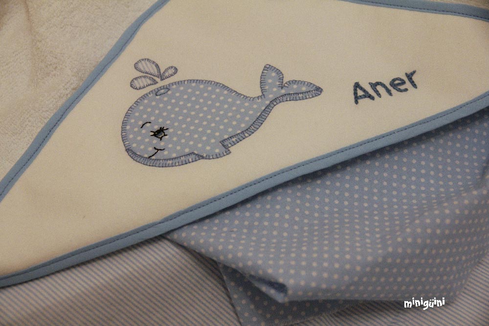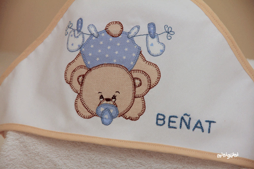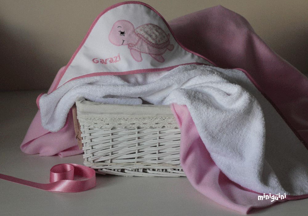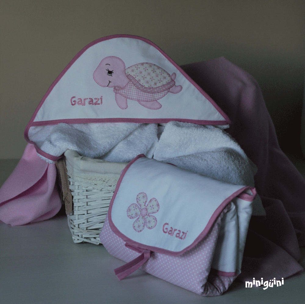 También podemos acompañar la capa de baño con productos para la higiene y utensilios para el baño, haciendo lo que siempre se ha llamado canastilla. Es un buen regalo con el que normalmente se acierta.