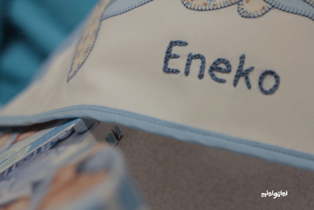 Se puede elegir entre tres medidas de capa y le pondremos en la capucha, como en todo lo demás, la aplicación y el nombre.